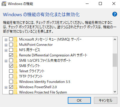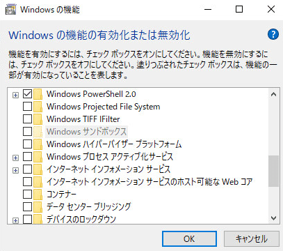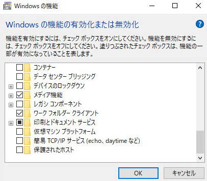 (例) バージョン1909:「Data Center Bridging」、「Containers」「Guarded Host」